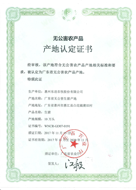 - 廣東出入境檢驗(yàn)檢疫局批準(zhǔn)注冊為“供港澳活豬飼養(yǎng)場”注冊編號為:GDS182